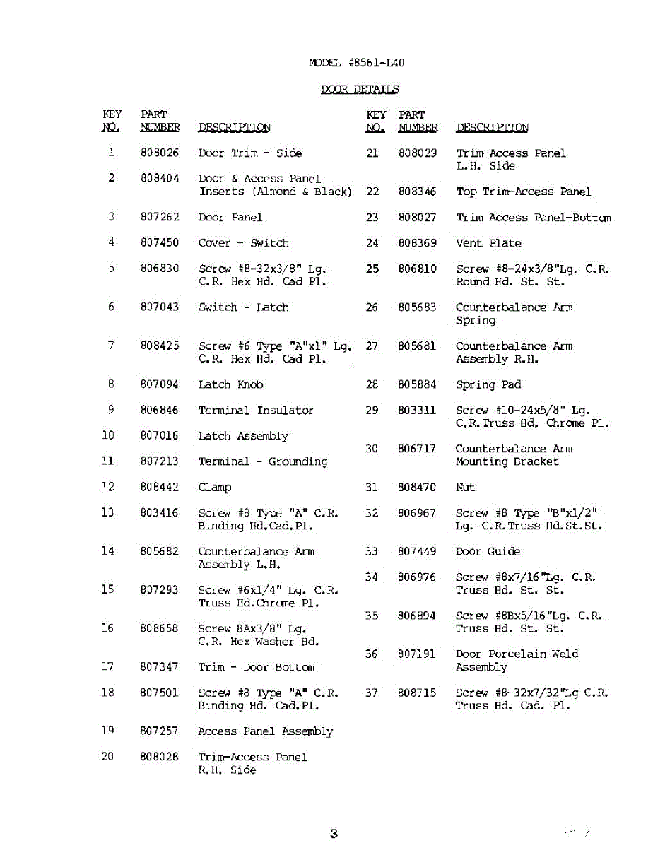 Parts for Roper 8571L40: 04 - Door Parts