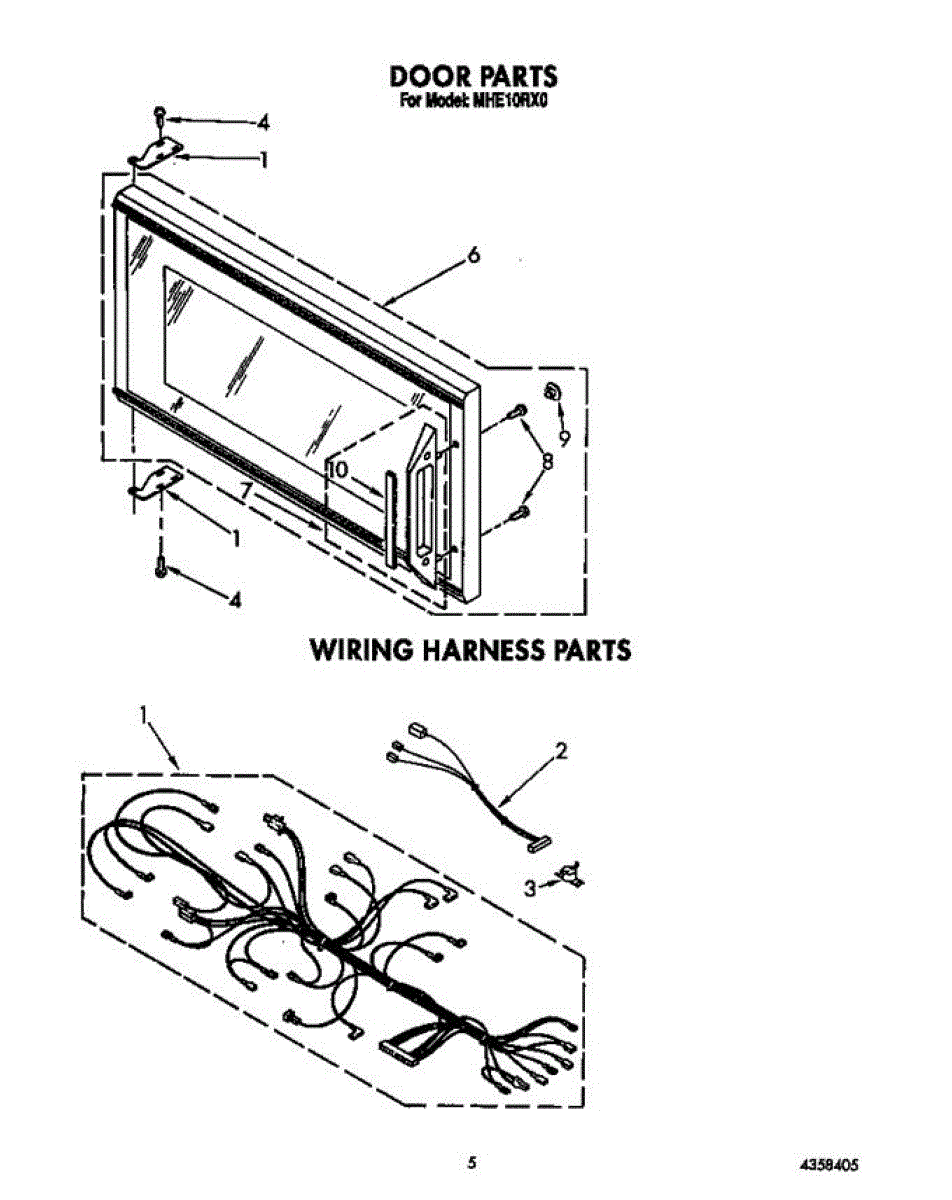 Mounting screw for microwaves. Secures door panels, handles, and internal components. Replace if stripped, missing, or damaged during repairs.