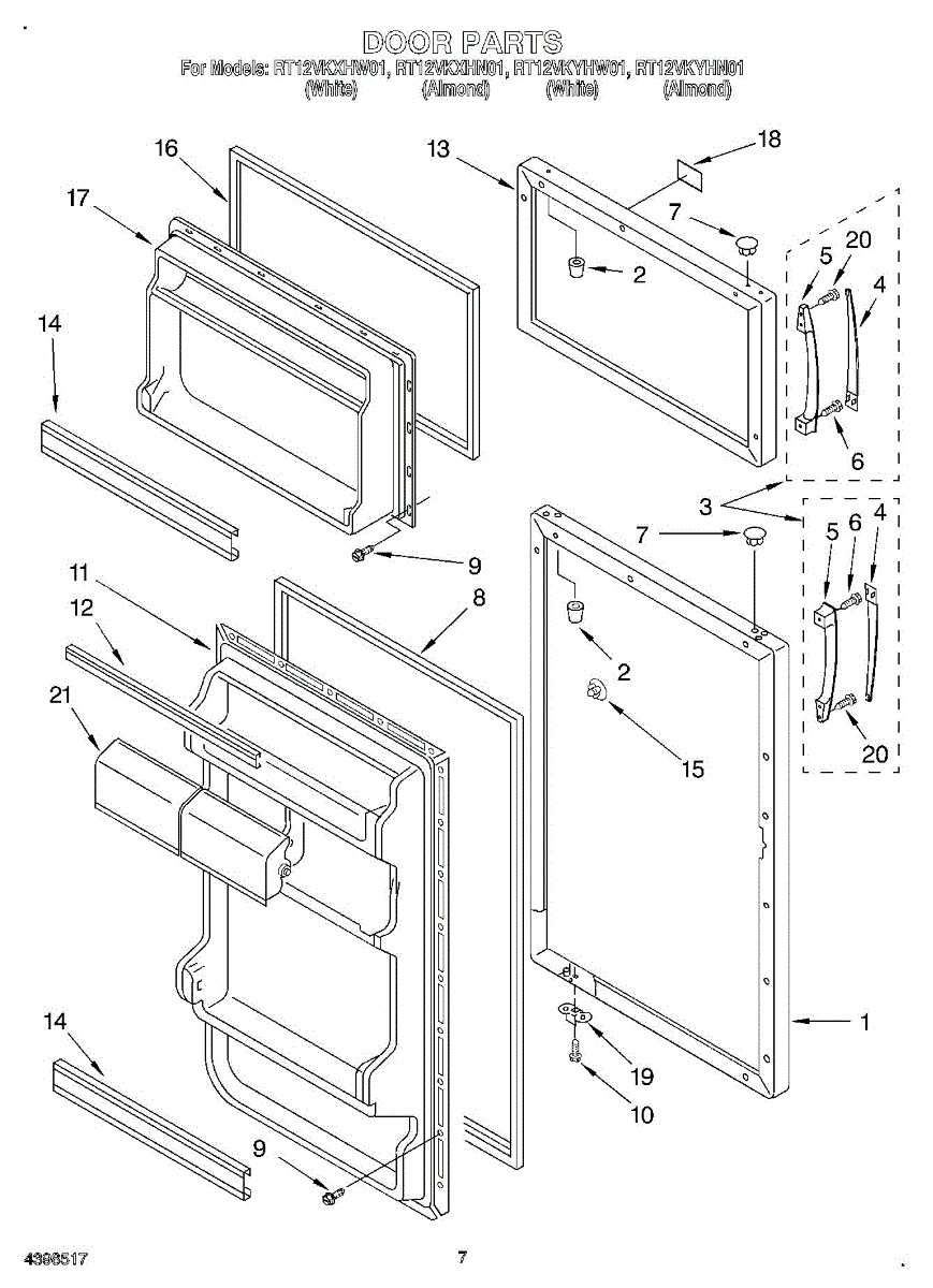 Parts for Roper RT12VKYHW01: 04 - Door, Lit / Optional Parts