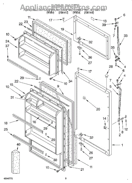 Parts for Roper RT14DKXFW01: 02 - Door Parts