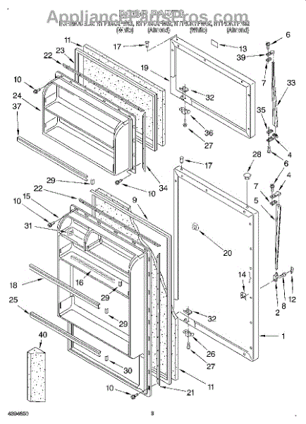 Parts for Roper RT14DKXFW02: 02 - Door Parts