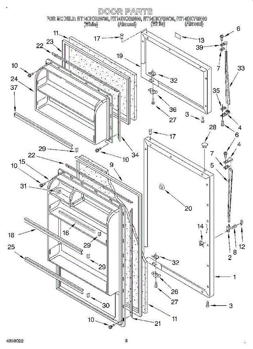 The Door Handle Kit is an OEM part for Whirlpool refrigerators. It contains both door handles, linkage, fasteners, and installation instructions needed to operate the refrigerator doors. Please note: Handle may be longer, this is a "cut to fit" design. For white order WP2162555. No longer made in almond. Includes both refrigerator and freezer door handles. Symptoms of a bad door handle kit include: