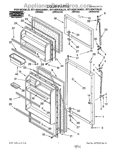 Parts for Roper RT14DKYAW01: 01 - Door Parts