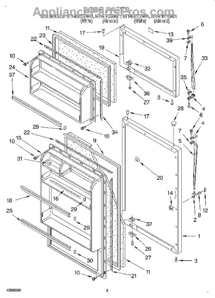 Parts for Roper RT14DKYGN01: 02 - Door Parts