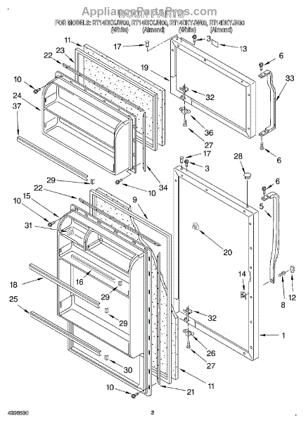 Parts for Roper RT14DKYJN00: 02 - Door Parts