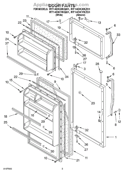 Parts for Roper RT14DKYKQ01: 02 - Door Parts