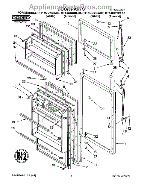Parts for Roper RT14GDXBW00: 01 - Door Parts