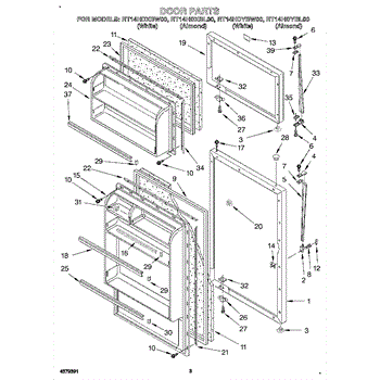 Parts for Roper RT14HDYBW00: 02 - Door Parts
