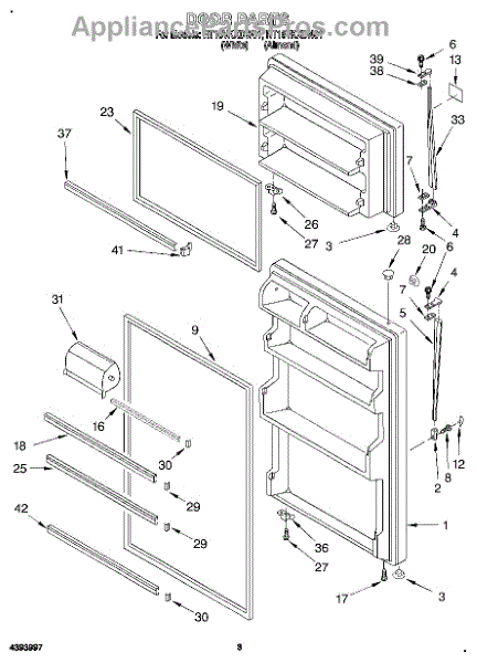 Parts for Roper RT16VKXDW01: 02 - Door Parts