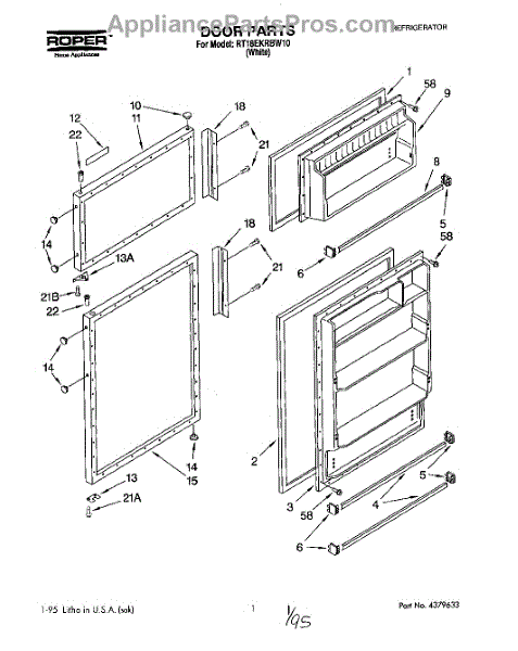 Parts for Roper RT18EKRBW10: 01 - Door Parts