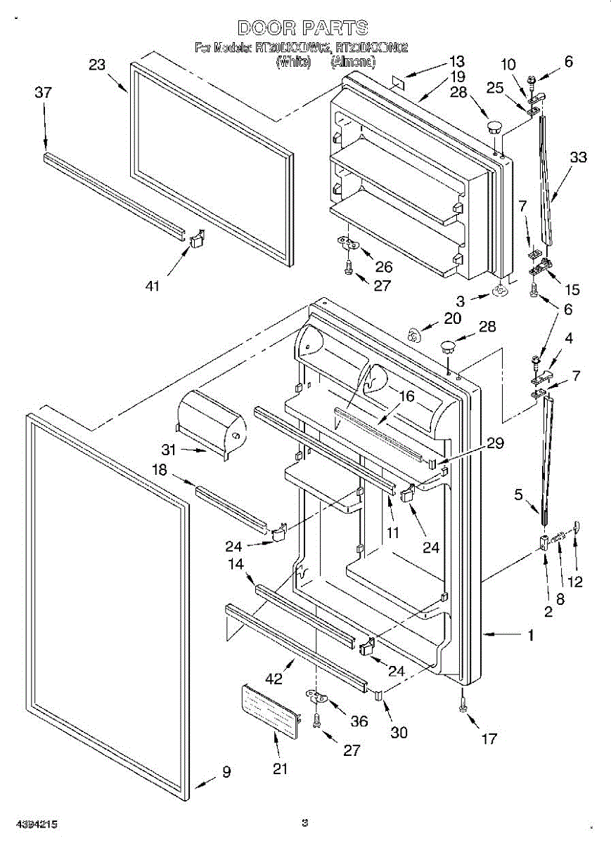 Parts for Roper RT20DKXDW02: 02 - Door Parts
