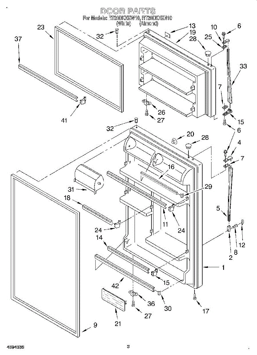 White refrigerator door panel assembly. Replaces cracked, discolored, or damaged exterior door panels. Installs on the front of your fridge door.