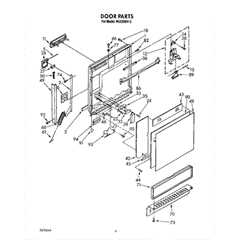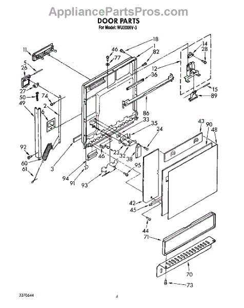 The Dispenser Cover Kit is an OEM replacement part for Whirlpool dishwashers. It includes both the outer lid that protects the detergent and rinse aid compartments as well as the latch mechanism securing it closed. This dishwasher dispenser kit included the cover, lid hinge pin, spring, snap, and latch.