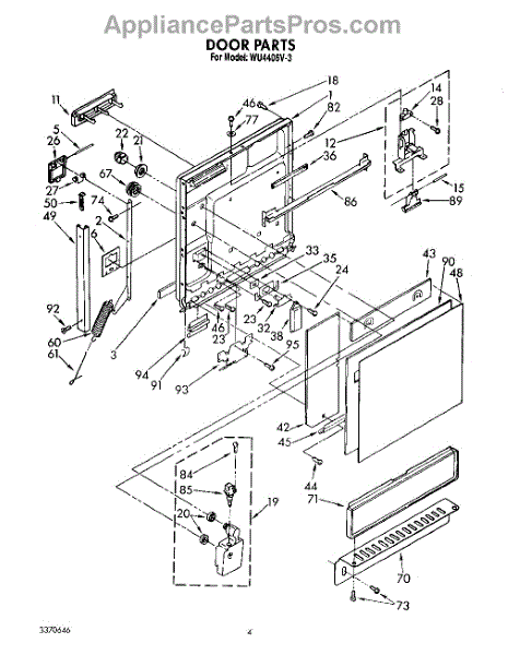 The Dispenser Cover Kit is an OEM replacement part for Whirlpool dishwashers. It includes both the outer lid that protects the detergent and rinse aid compartments as well as the latch mechanism securing it closed. This dishwasher dispenser kit included the cover, lid hinge pin, spring, snap, and latch.