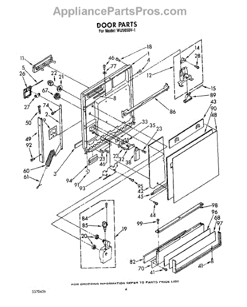 The Dispenser Cover Kit is an OEM replacement part for Whirlpool dishwashers. It includes both the outer lid that protects the detergent and rinse aid compartments as well as the latch mechanism securing it closed. This dishwasher dispenser kit included the cover, lid hinge pin, spring, snap, and latch.