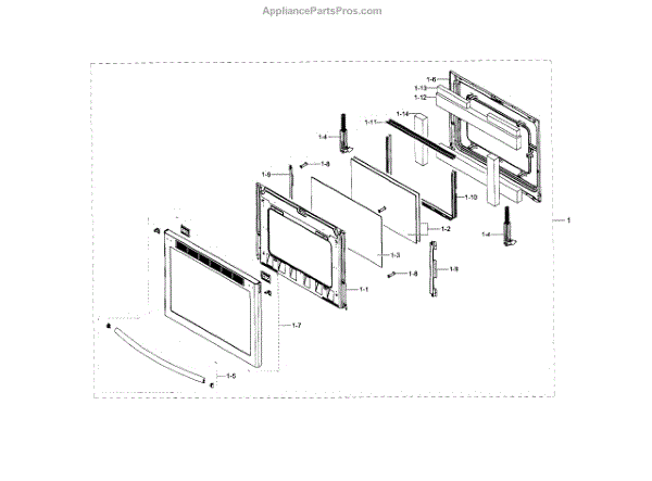This is an oven door. This part is a complete door that includes the door itself, the seal, and the handle. The oven door may be heavy, so two people may be needed for this replacement.The oven door has a glass front which can become cracked or broken for reasons. If this happens, this part is the genuine replacement part. If the oven door comes into forceful impact with another object, it may become dented. Even if it's not affecting the operation of the unit, the user may wish to replace it for cosmetic reasons. Be sure to let the oven cool down completely before replacing this part. Wear work gloves for safety.This oven door is sold individually. It is sourced directly from the manufacturer and is a durable replacement part. This oven door is compatible with ranges that are manufactured by Samsung.