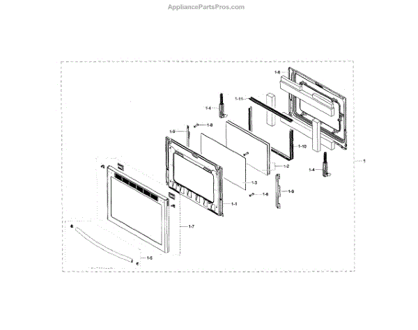 This is an oven door. This part is a complete door that includes the door itself, the seal, and the handle. The oven door may be heavy, so two people may be needed for this replacement.The oven door has a glass front which can become cracked or broken for reasons. If this happens, this part is the genuine replacement part. If the oven door comes into forceful impact with another object, it may become dented. Even if it's not affecting the operation of the unit, the user may wish to replace it for cosmetic reasons. Be sure to let the oven cool down completely before replacing this part. Wear work gloves for safety.This oven door is sold individually. It is sourced directly from the manufacturer and is a durable replacement part. This oven door is compatible with ranges that are manufactured by Samsung.