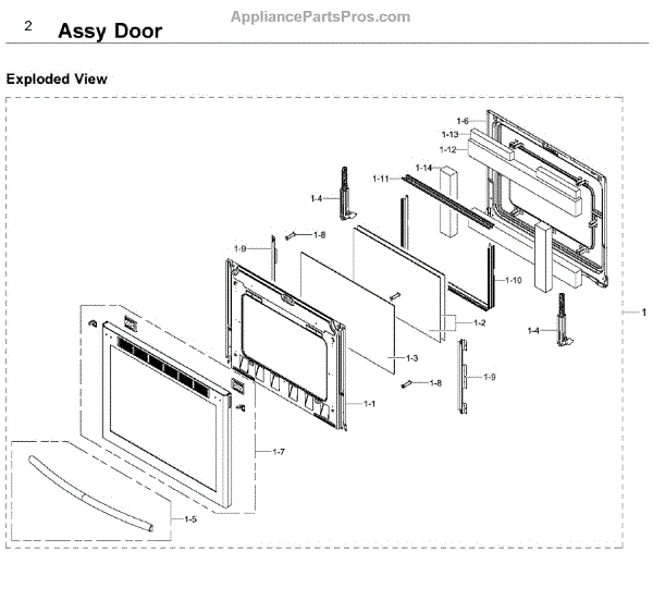 This is an oven door. This part is a complete door that includes the door itself, the seal, and the handle. The oven door may be heavy, so two people may be needed for this replacement.The oven door has a glass front which can become cracked or broken for reasons. If this happens, this part is the genuine replacement part. If the oven door comes into forceful impact with another object, it may become dented. Even if it's not affecting the operation of the unit, the user may wish to replace it for cosmetic reasons. Be sure to let the oven cool down completely before replacing this part. Wear work gloves for safety.This oven door is sold individually. It is sourced directly from the manufacturer and is a durable replacement part. This oven door is compatible with ranges that are manufactured by Samsung.