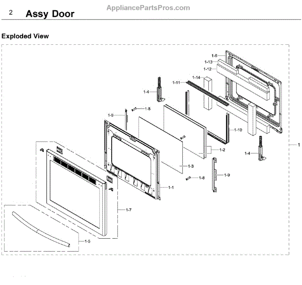 This is an oven door. This part is a complete door that includes the door itself, the seal, and the handle. The oven door may be heavy, so two people may be needed for this replacement.The oven door has a glass front which can become cracked or broken for reasons. If this happens, this part is the genuine replacement part. If the oven door comes into forceful impact with another object, it may become dented. Even if it's not affecting the operation of the unit, the user may wish to replace it for cosmetic reasons. Be sure to let the oven cool down completely before replacing this part. Wear work gloves for safety.This oven door is sold individually. It is sourced directly from the manufacturer and is a durable replacement part. This oven door is compatible with ranges that are manufactured by Samsung.