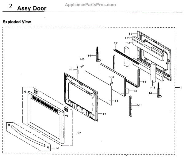 This is an oven door. This part is a complete door that includes the door itself, the seal, and the handle. The oven door may be heavy, so two people may be needed for this replacement.The oven door has a glass front which can become cracked or broken for reasons. If this happens, this part is the genuine replacement part. If the oven door comes into forceful impact with another object, it may become dented. Even if it's not affecting the operation of the unit, the user may wish to replace it for cosmetic reasons. Be sure to let the oven cool down completely before replacing this part. Wear work gloves for safety.This oven door is sold individually. It is sourced directly from the manufacturer and is a durable replacement part. This oven door is compatible with ranges that are manufactured by Samsung.