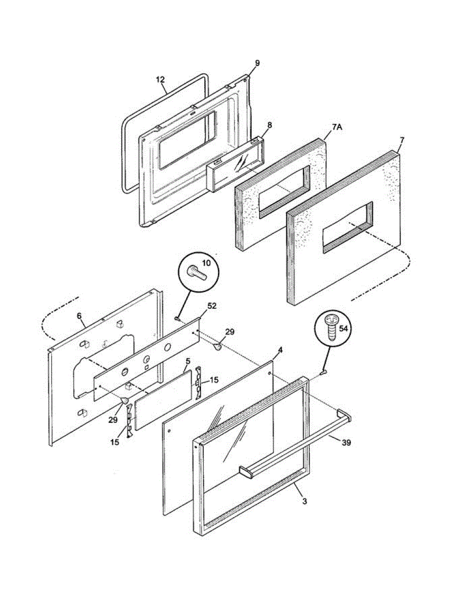 Inner glass panel for range oven doors. Installs between the outer and inner door panels. Replace if cracked, broken, or discolored from heat exposure.