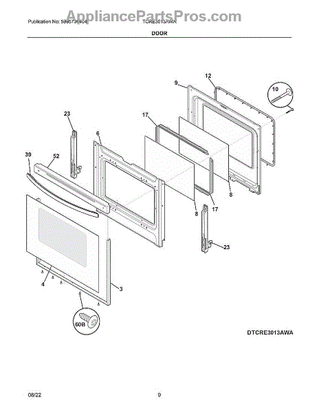 The Door Handle is an OEM part for Frigidaire ovens. This handle is designed to provide a secure grip for opening and closing the oven door. It is essential for safely accessing the oven's interior, ensuring convenience and ease of use while cooking or cleaning.