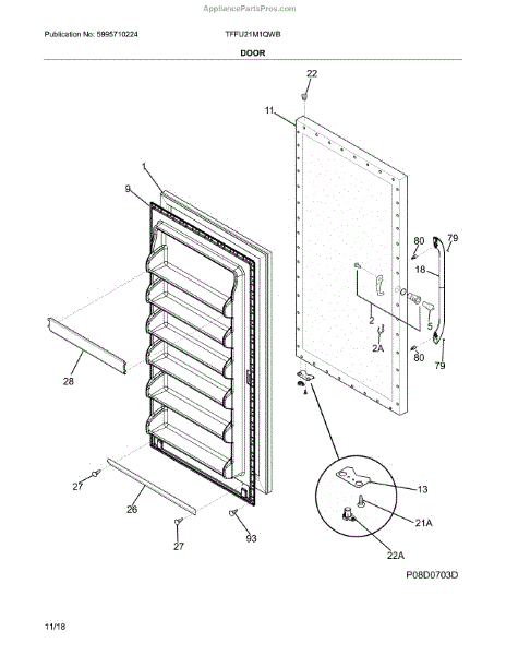 The Door Gasket is an OEM part for Frigidaire refrigerators. It is responsible for creating an airtight seal around the refrigerator or freezer door, preventing cold air from escaping and maintaining the appliance's efficiency.