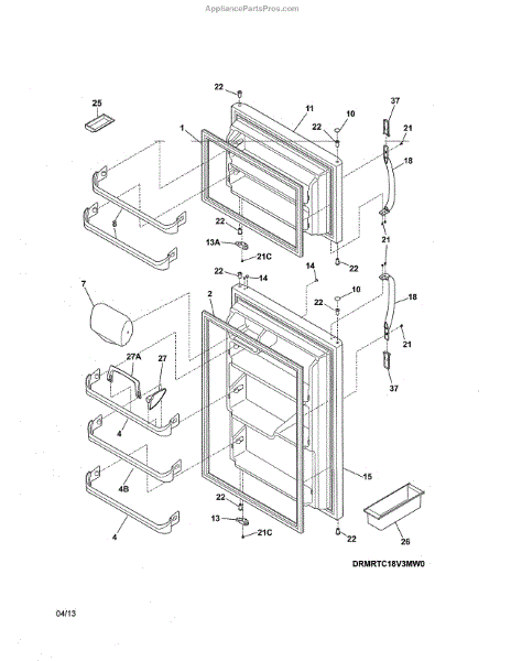 The Door Shelf Bar is an OEM part for Frigidaire refrigerators. This bar attaches to the door, providing a secure front barrier for door shelves to help hold items like bottles, jars, and condiments in place. It enhances the storage capacity and organization of the refrigerator door, ensuring that items do not fall out when the door is opened or closed.