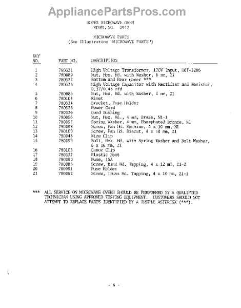 Whirlpool Microwave Parts