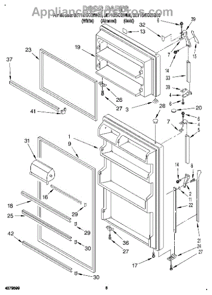 Parts for Whirlpool 3ET16NKXBG00: 02 - Door Parts