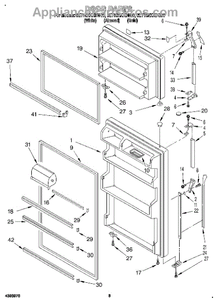 Parts for Whirlpool 3ET16NKXDW00: 02 - Door Parts