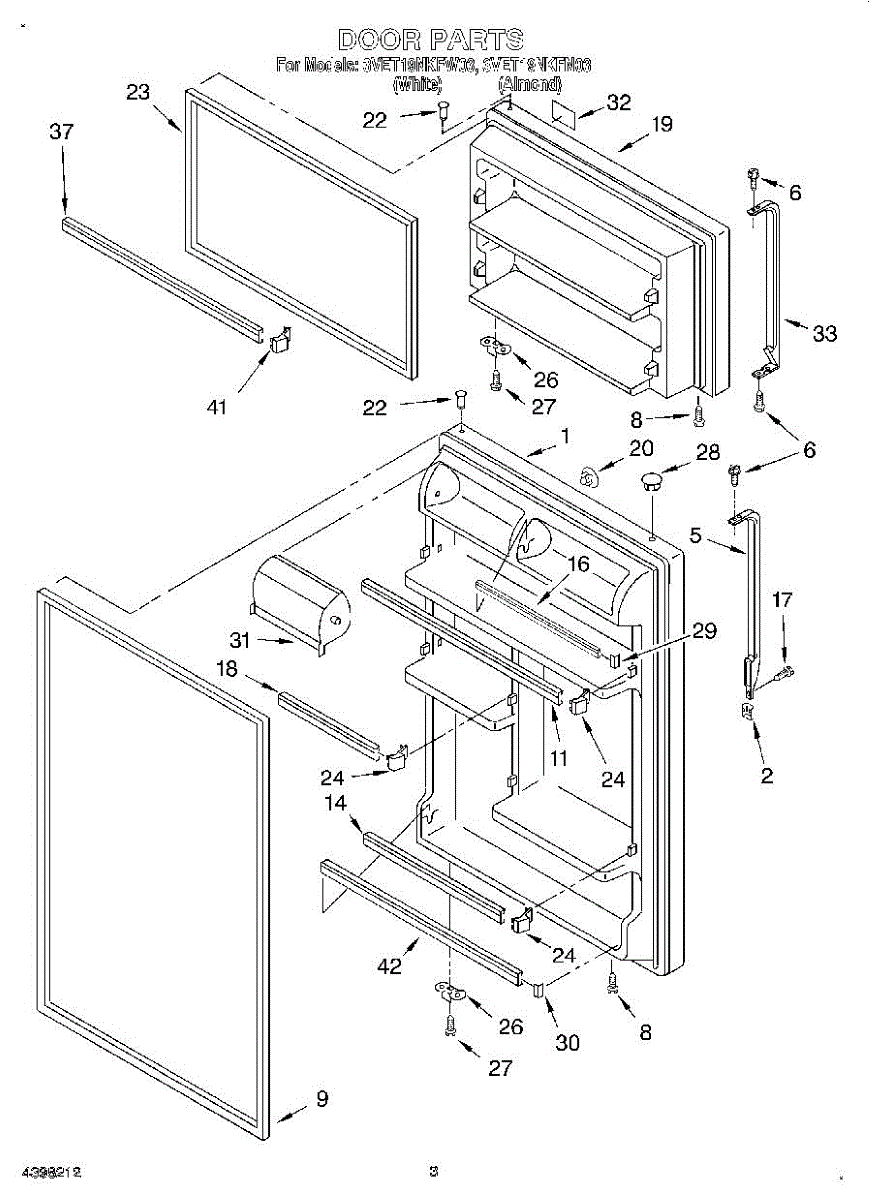 Refrigerator door assembly with gasket-white.