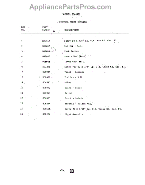 Parts for Whirlpool 8564900: 03 - Door Parts