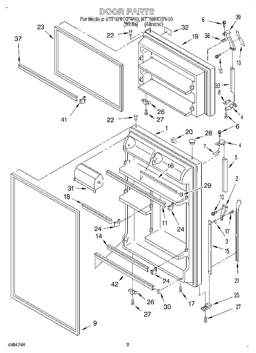 Parts for Whirlpool 8ET18NKXFN00: 02 - Door Parts