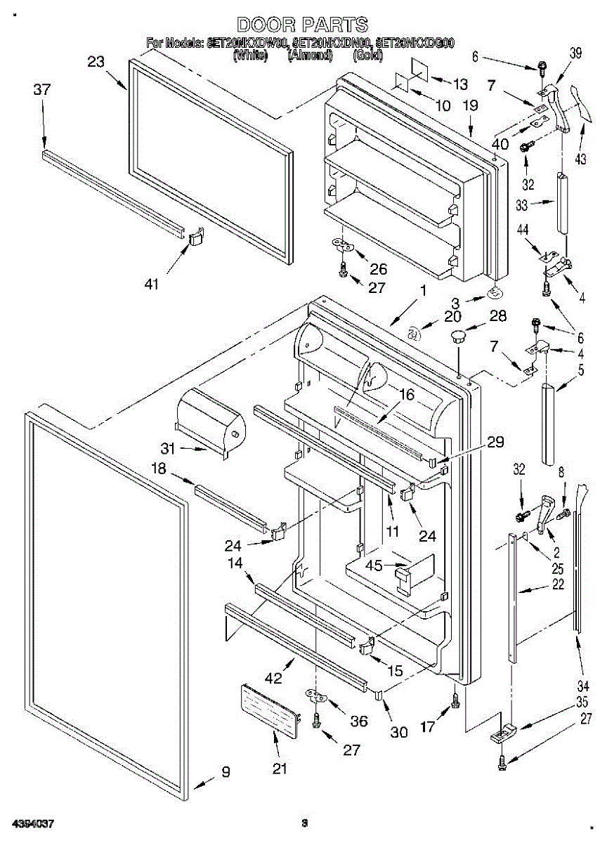 Parts for Whirlpool 8ET20NKXDG00: 02 - Door Parts