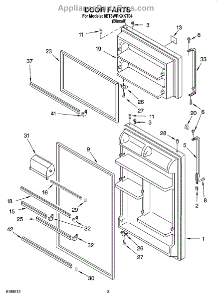 Parts for Whirlpool 8ET8WPKXKT04: 02 - Door Parts
