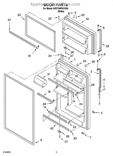 Refrigerator door assembly with gasket-white.