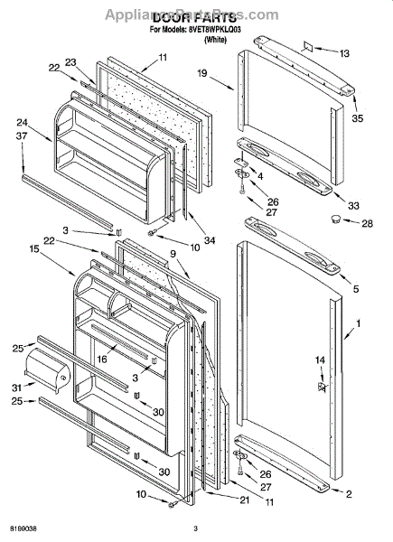 Causes of a bad end cap can include wear and tear from frequent use, heavy loads in the door bins causing stress and fractures, and accidental impacts or mishandling leading to cracks or breaks.