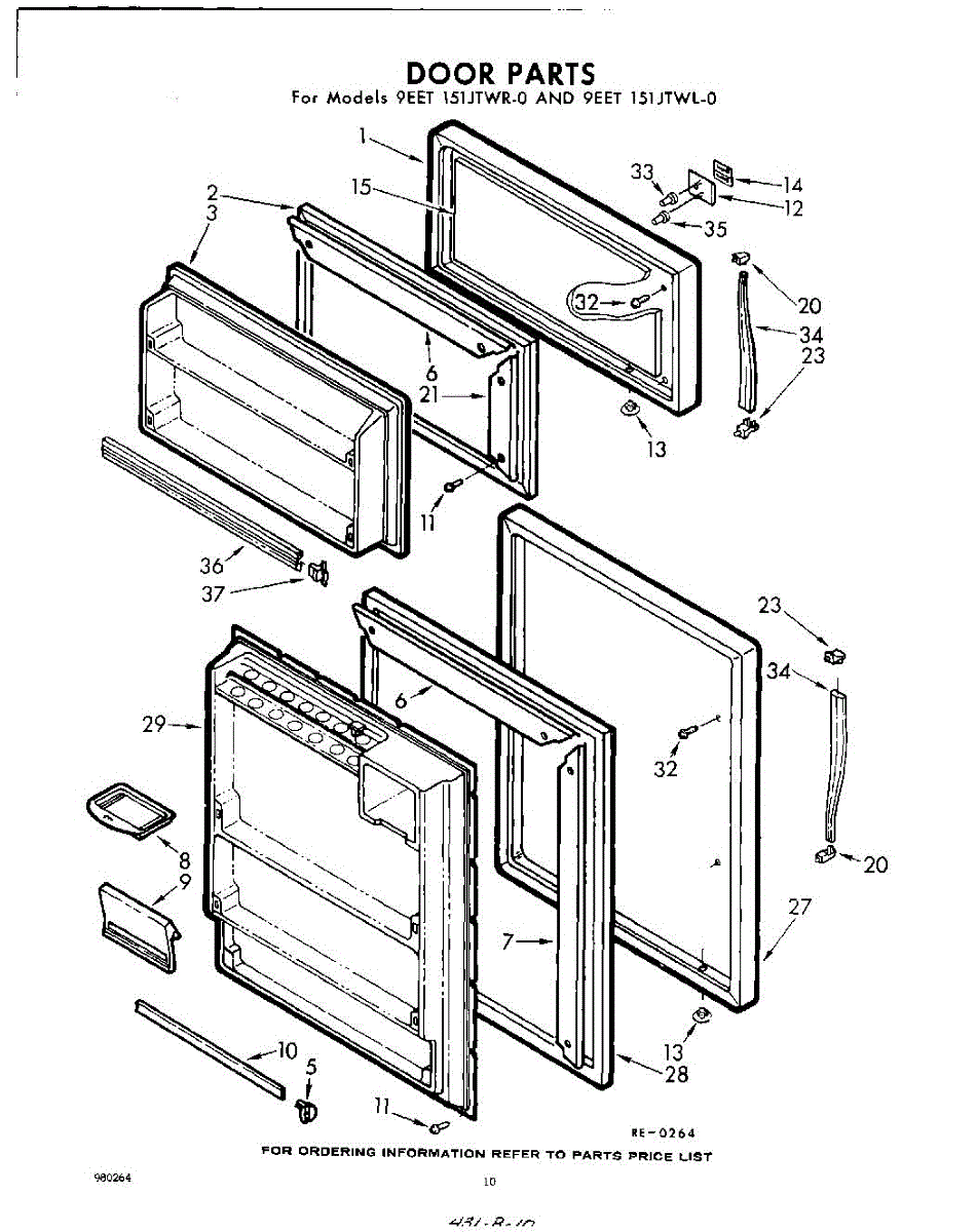 Parts for Whirlpool 9EET151JTWR0: 10 - Door Parts