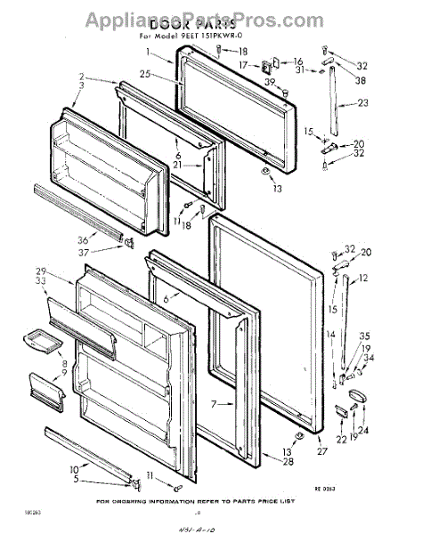 Parts for Whirlpool 9EET151PKWR0: 10 - Door Parts