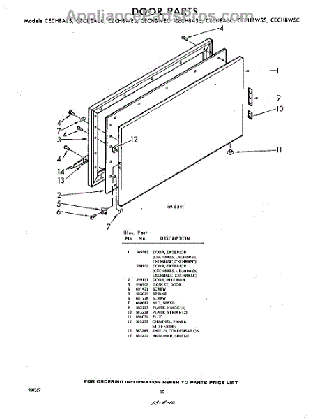 Parts for Whirlpool CECH8AEC: 10 - Door Parts