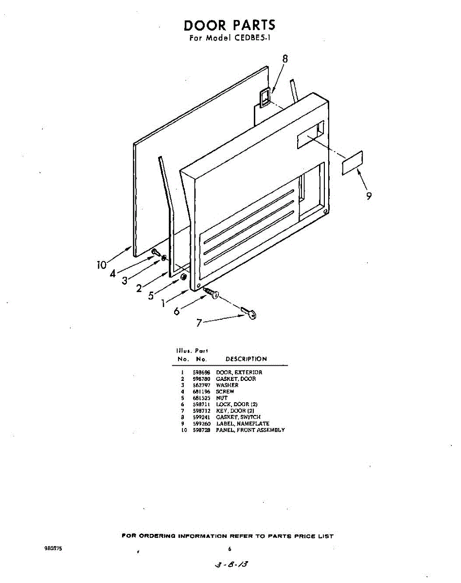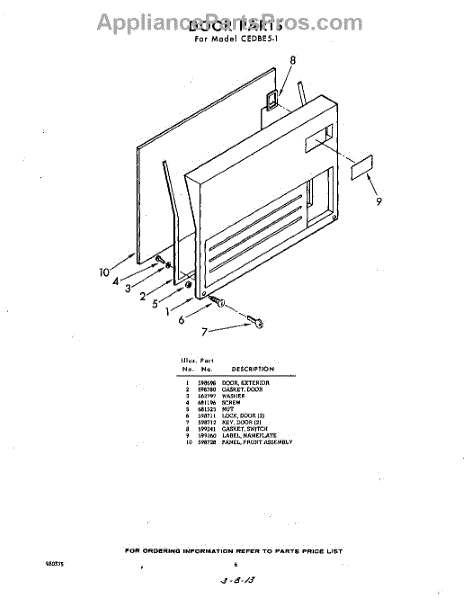 Parts for Whirlpool CEDBE51: 06 - Door Parts