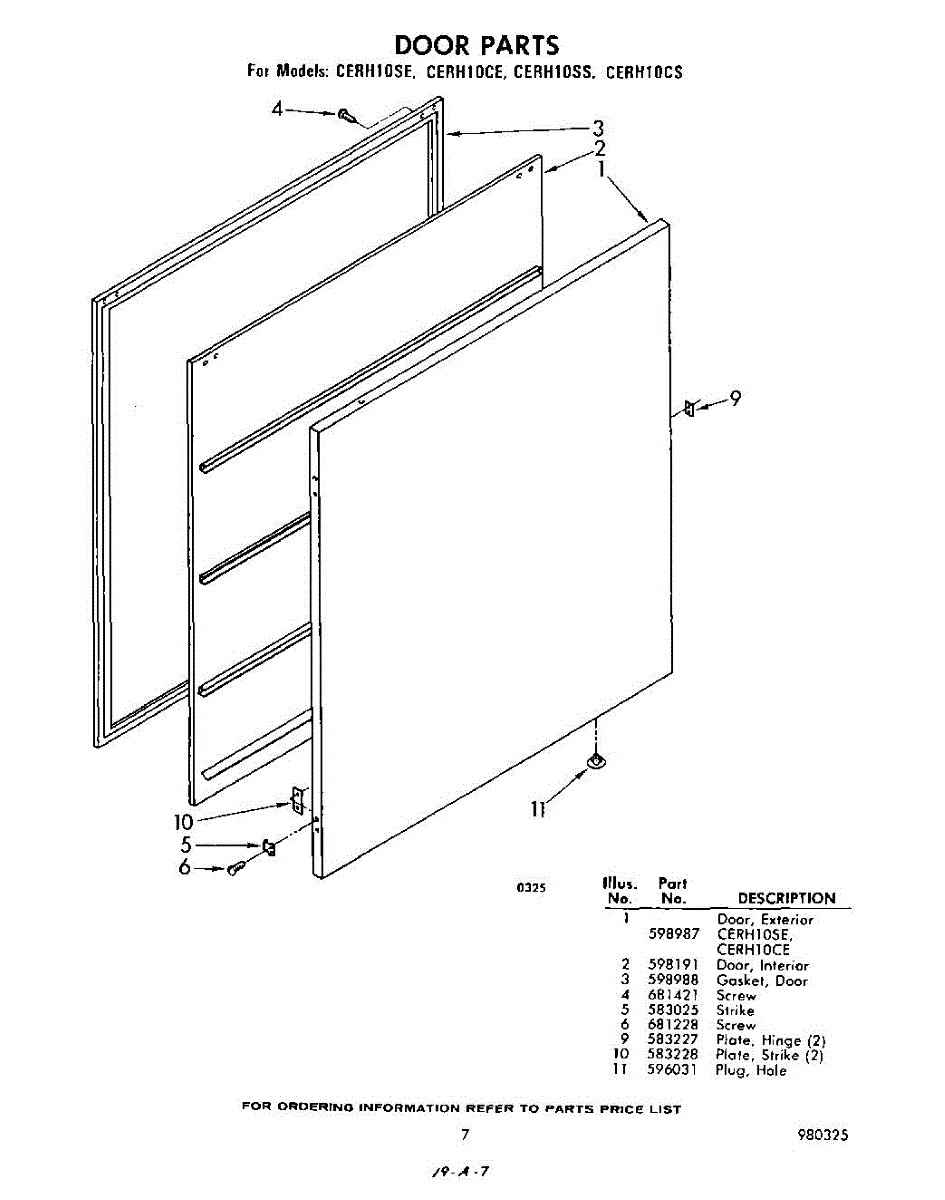 Parts for Whirlpool CERH10CS: 07 - Door Parts