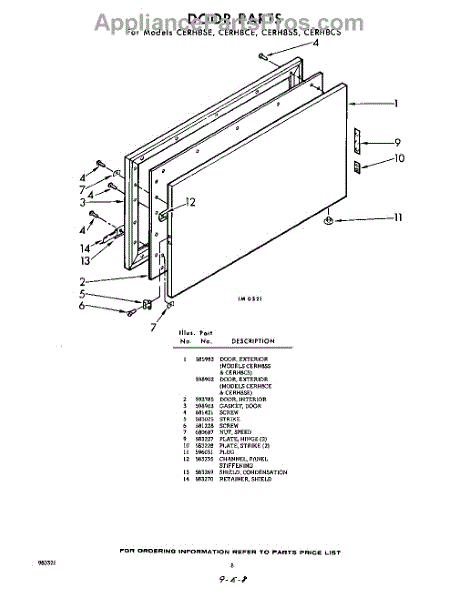 Parts for Whirlpool CERH8CS: 08 - Door Parts