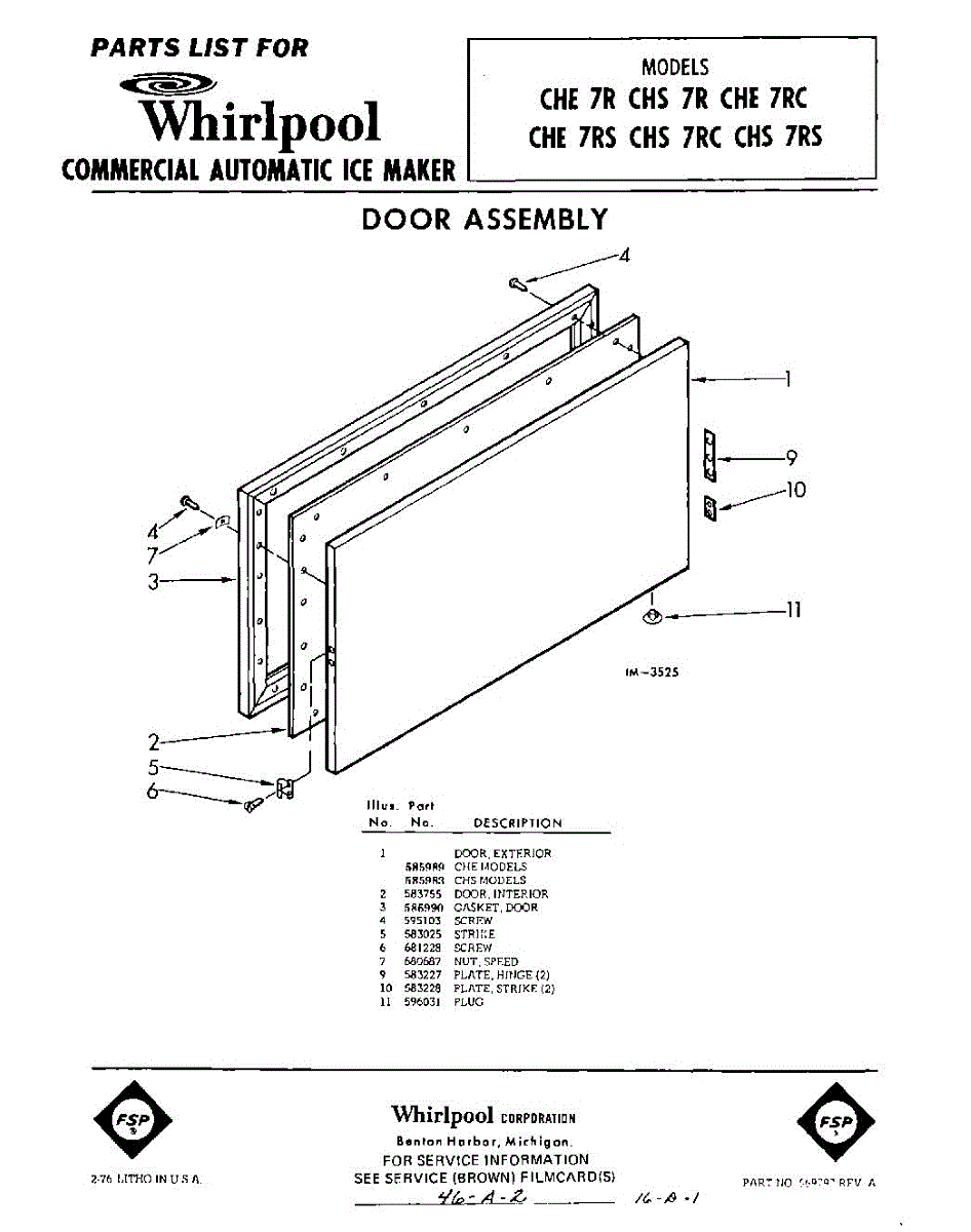 Parts for Whirlpool CHE7RC: 01 - Door Parts