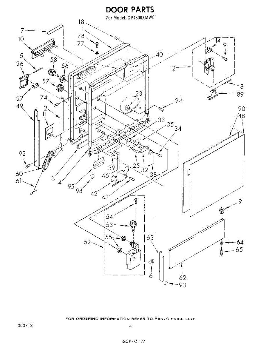 Door spring assembly with retainer for dishwashers. Installs between door hinge and frame to counterbalance door weight. Replace when cracked or broken.
