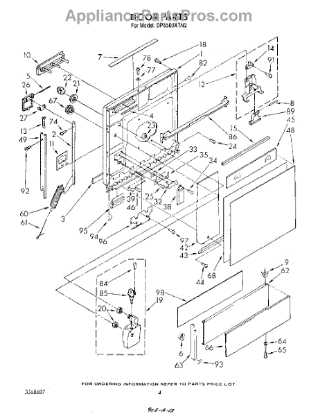 The Dispenser Cover Kit is an OEM replacement part for Whirlpool dishwashers. It includes both the outer lid that protects the detergent and rinse aid compartments as well as the latch mechanism securing it closed. This dishwasher dispenser kit included the cover, lid hinge pin, spring, snap, and latch.