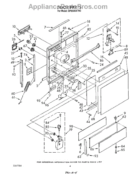 Parts for Whirlpool DP8500XTN3: 03 - Door Parts