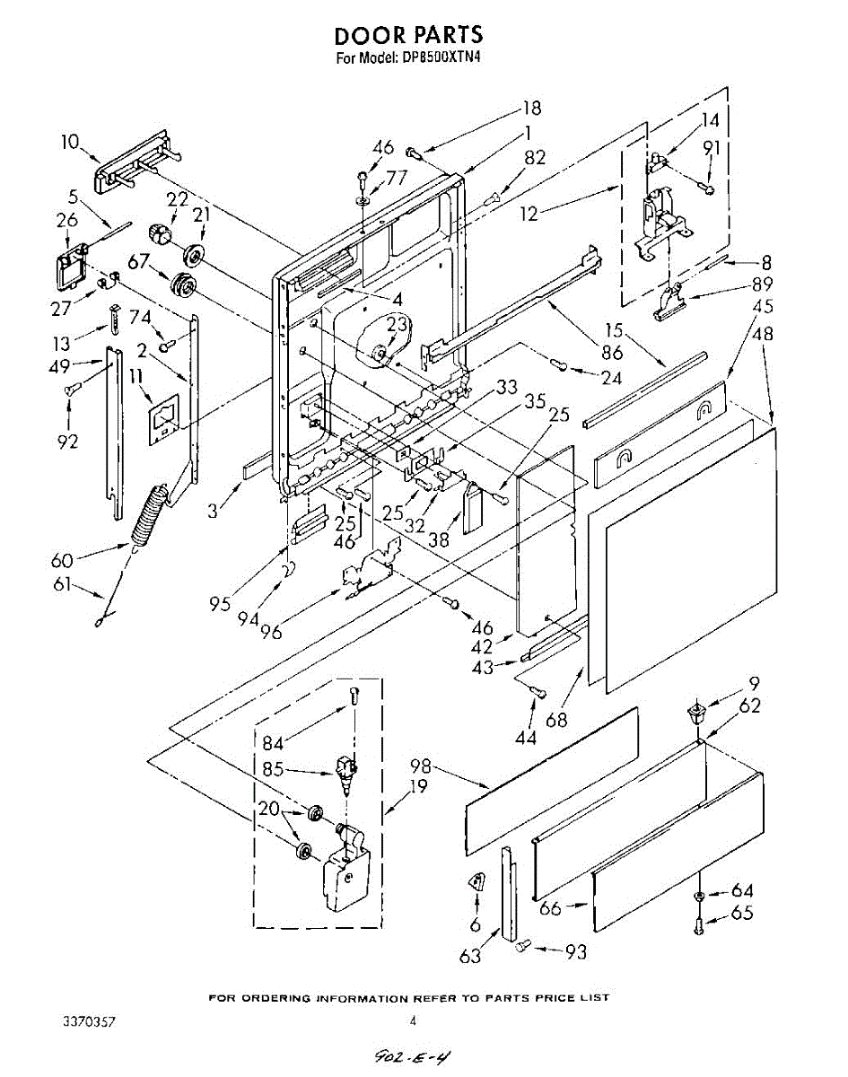 Parts for Whirlpool DP8500XTN4: 03 - Door Parts