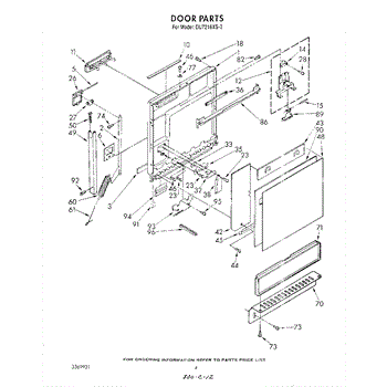 The Dispenser Cover Kit is an OEM replacement part for Whirlpool dishwashers. It includes both the outer lid that protects the detergent and rinse aid compartments as well as the latch mechanism securing it closed. This dishwasher dispenser kit included the cover, lid hinge pin, spring, snap, and latch.